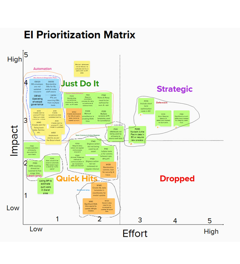 An end to end value stream assessment is conducted to pick the correctly prioritized list of projects. This is typically done within a week’s time.